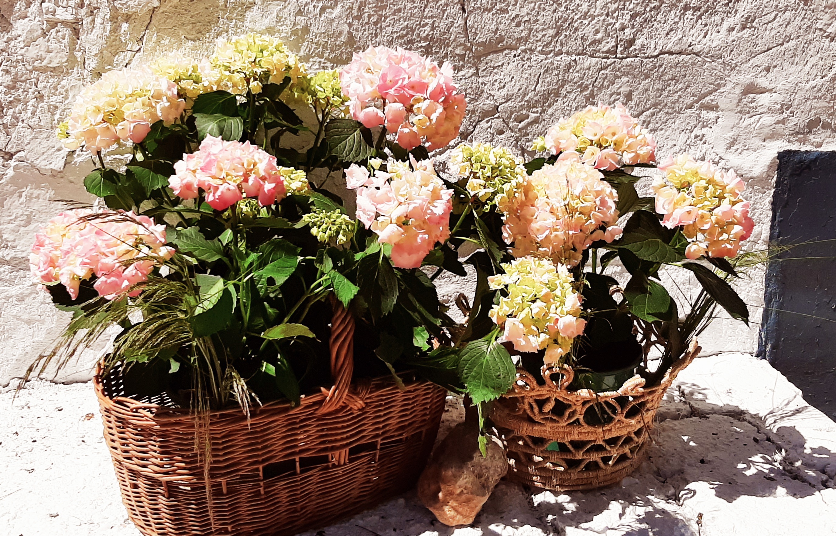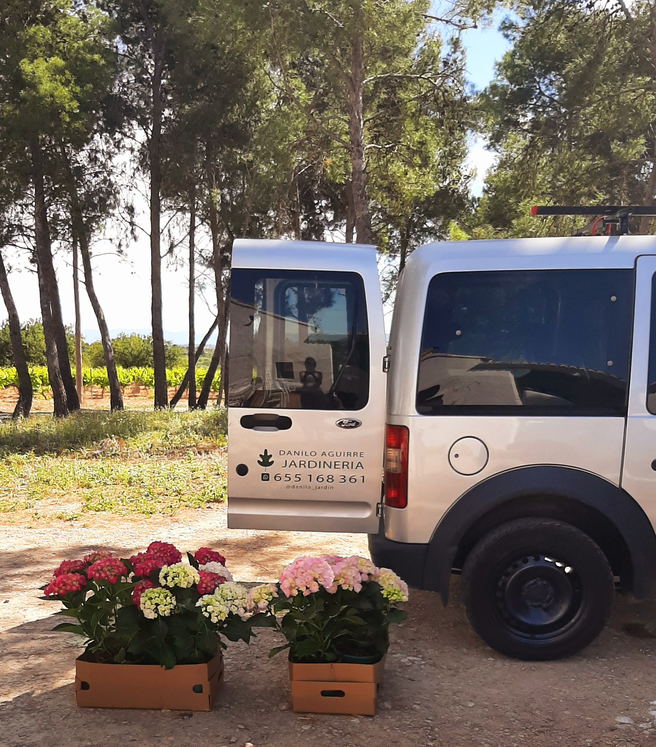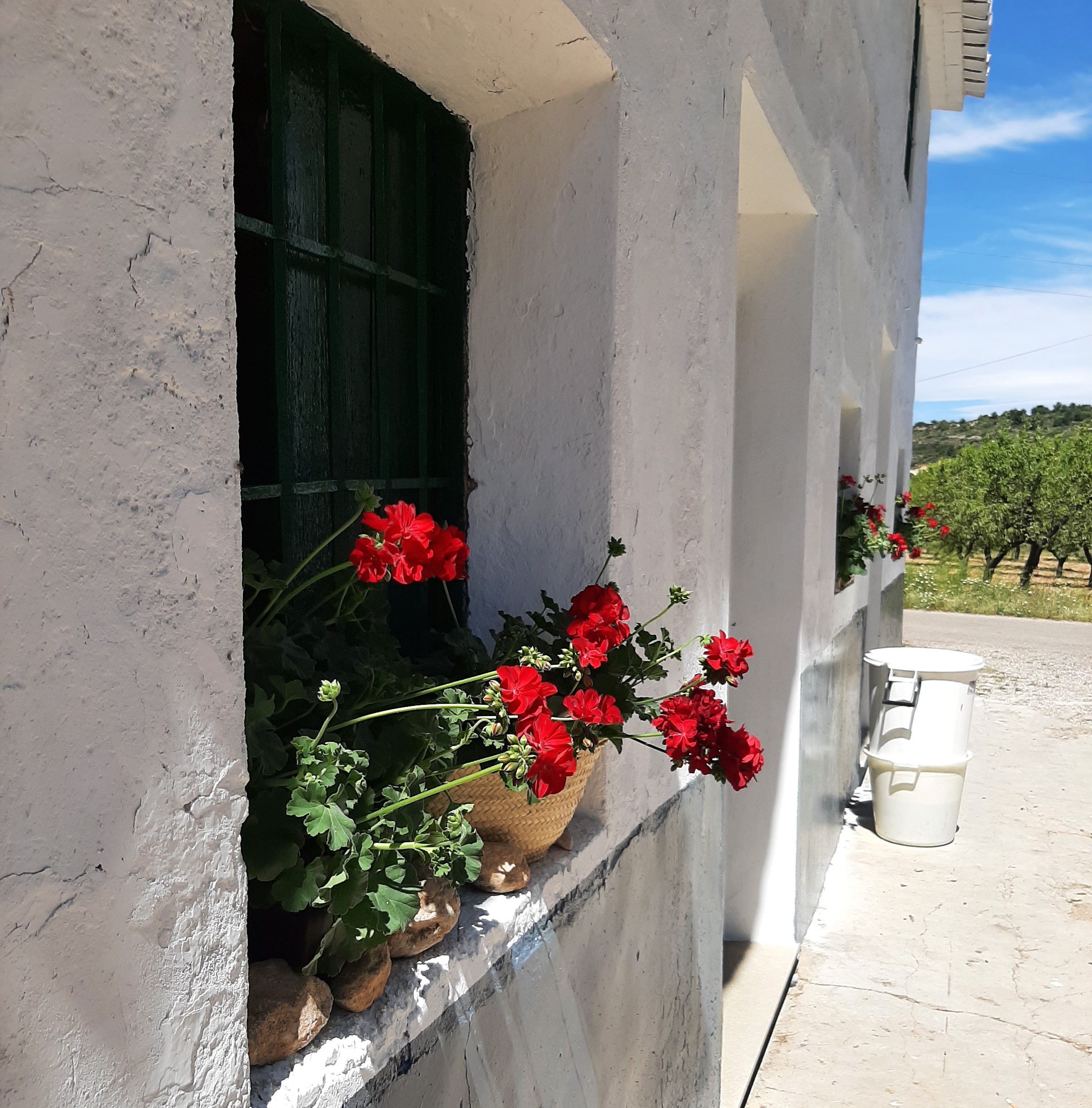Colocación de plantas con diferentes flores en casa de campo en Cheste - Valencia