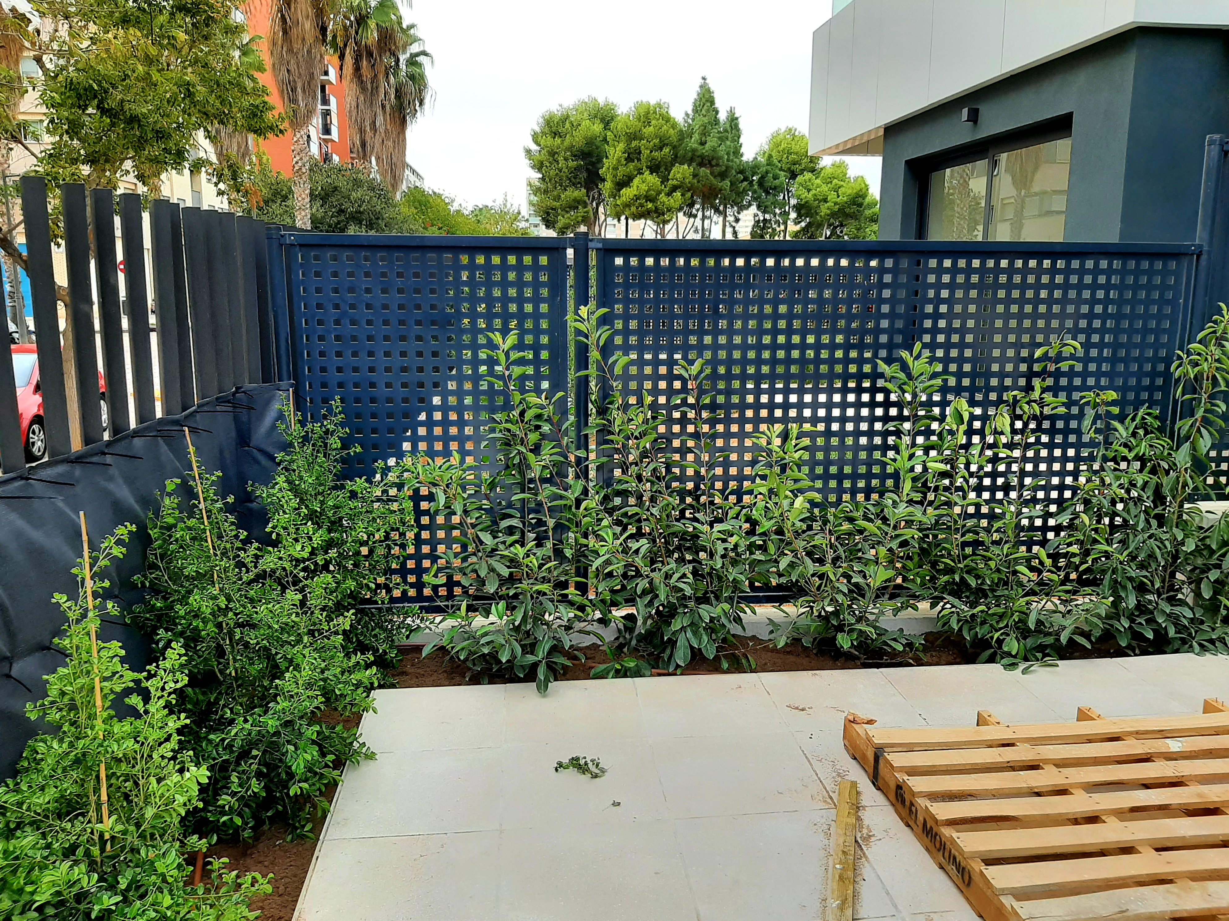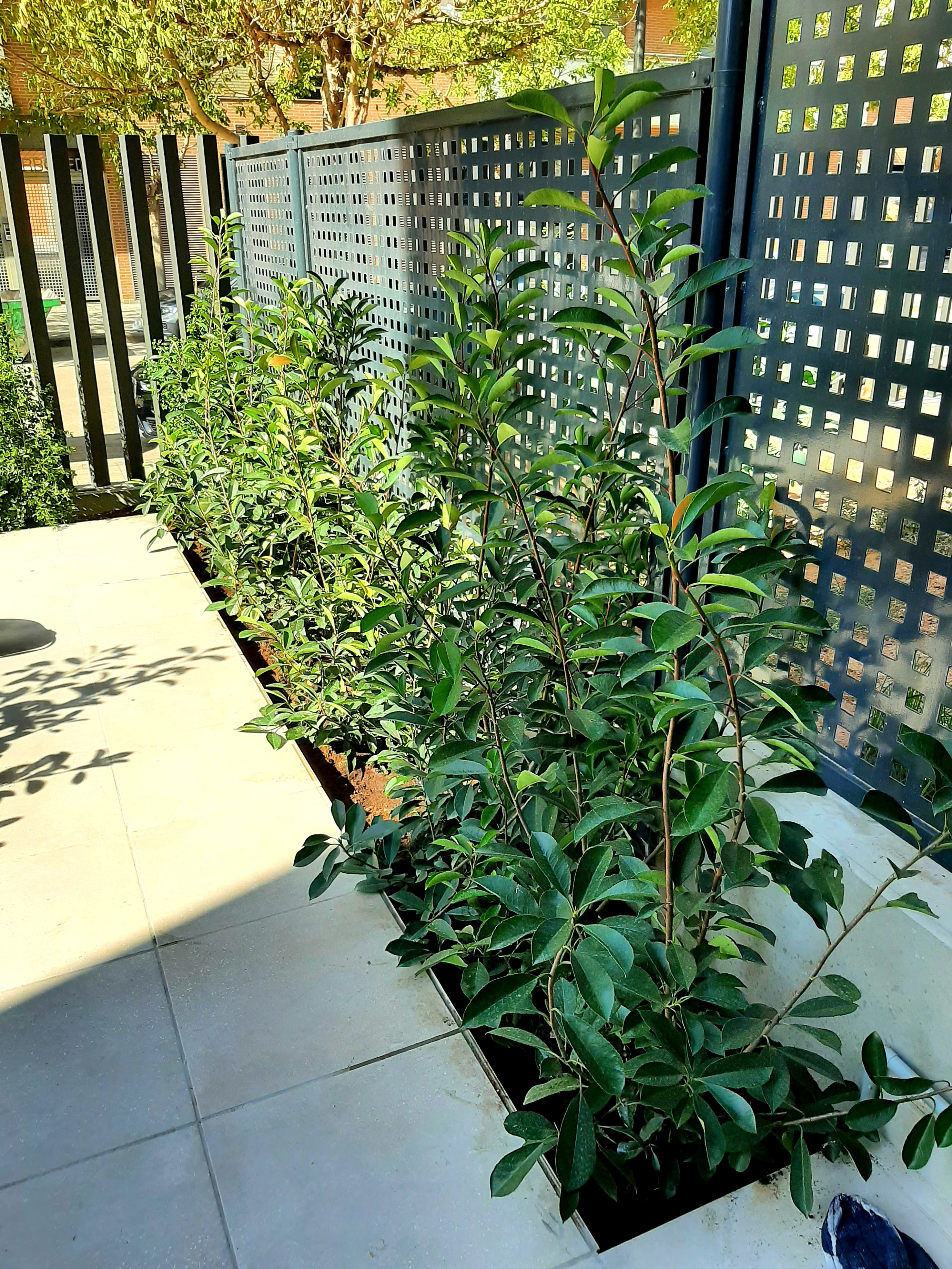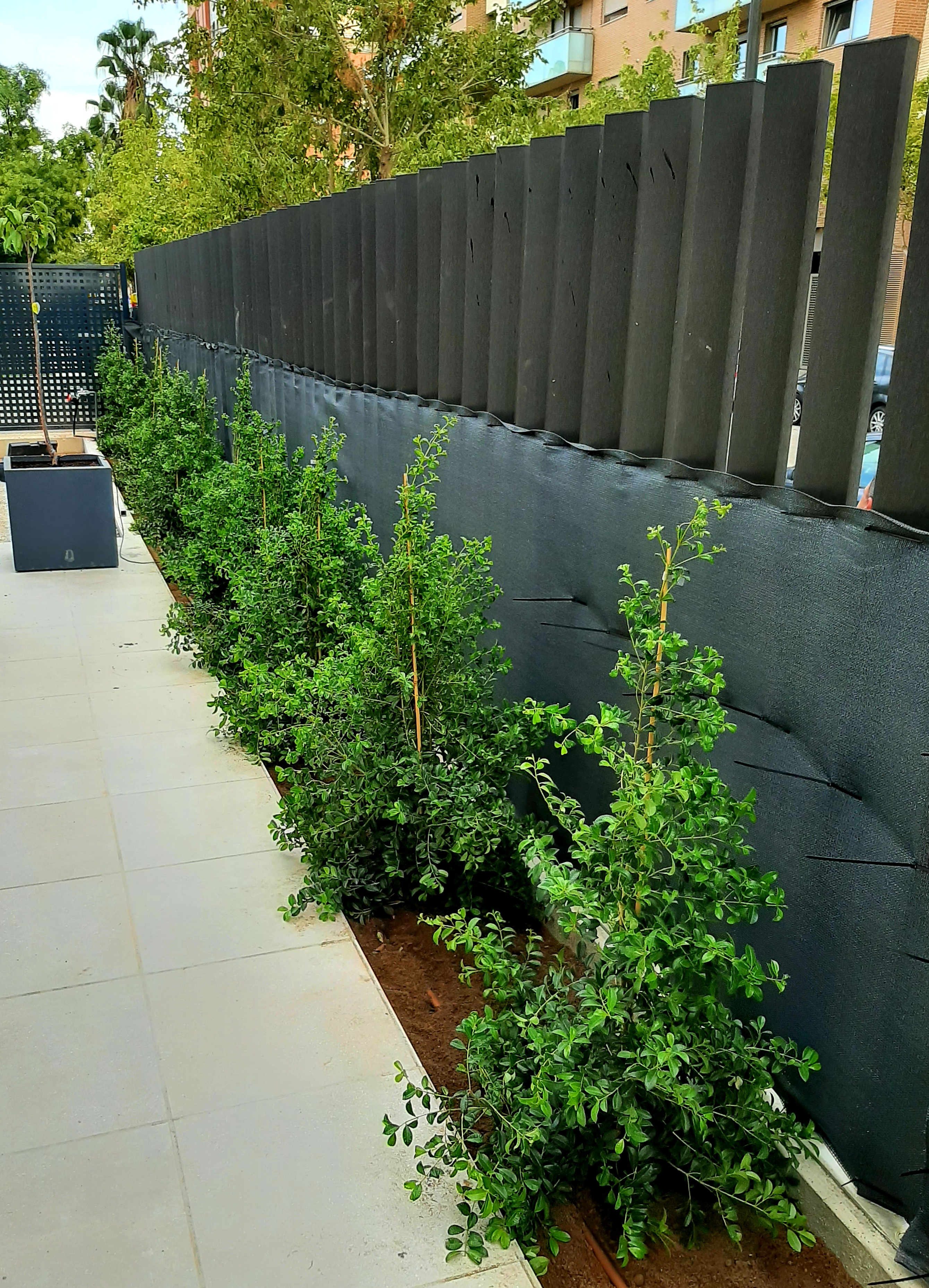Plantación de Eugenias y Photinias para formación de setos en la terraza de un piso en Campanar - Valencia