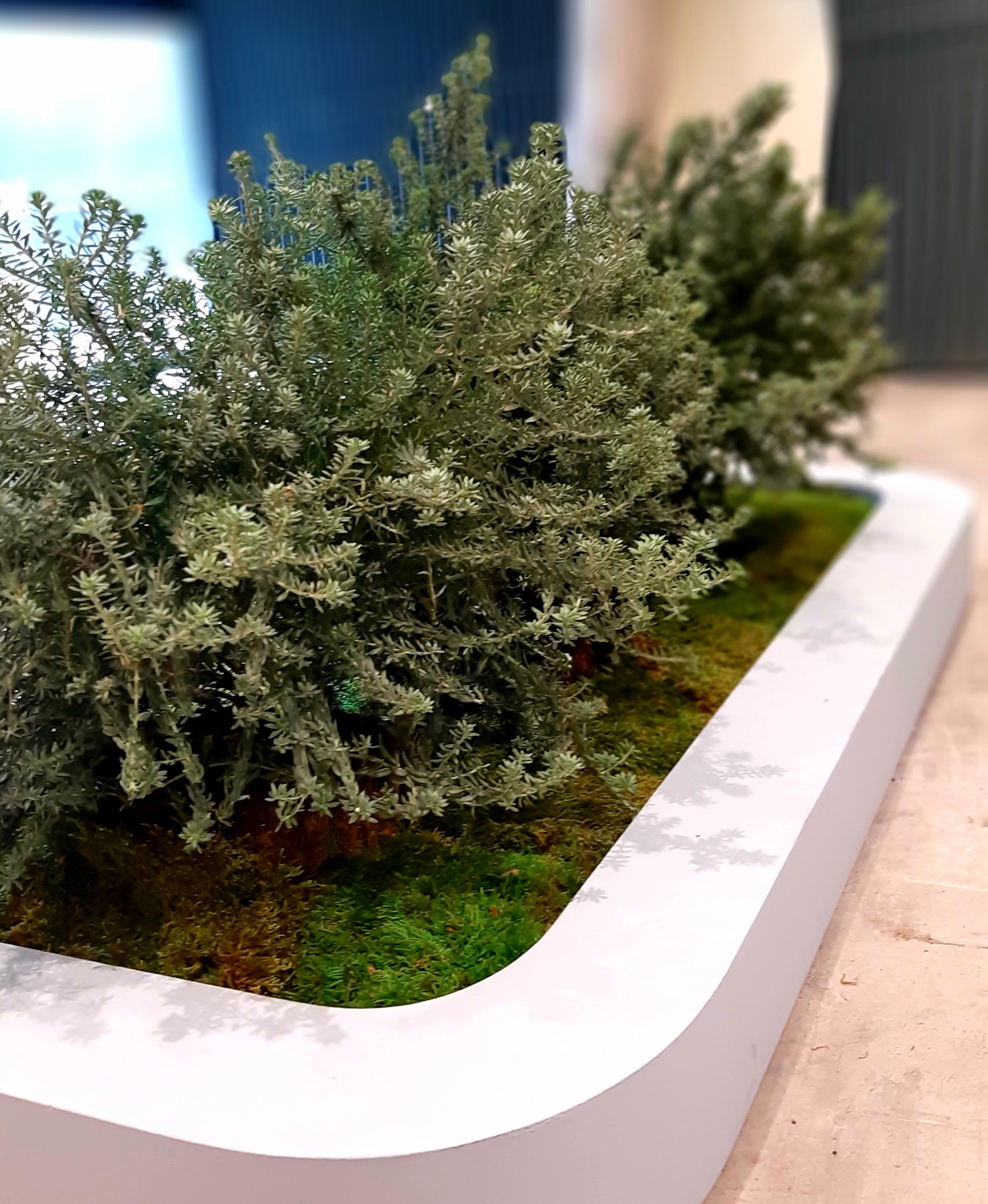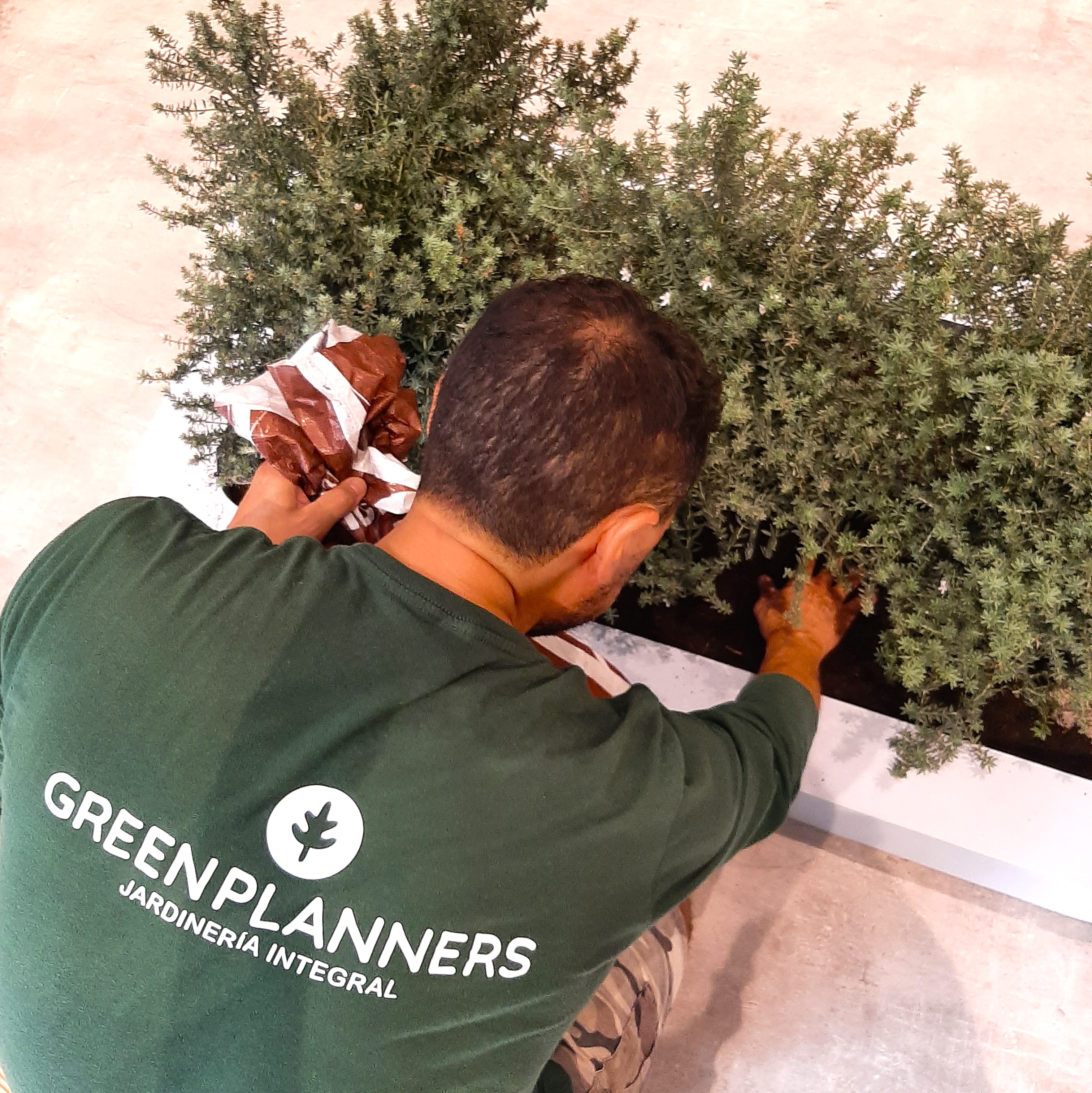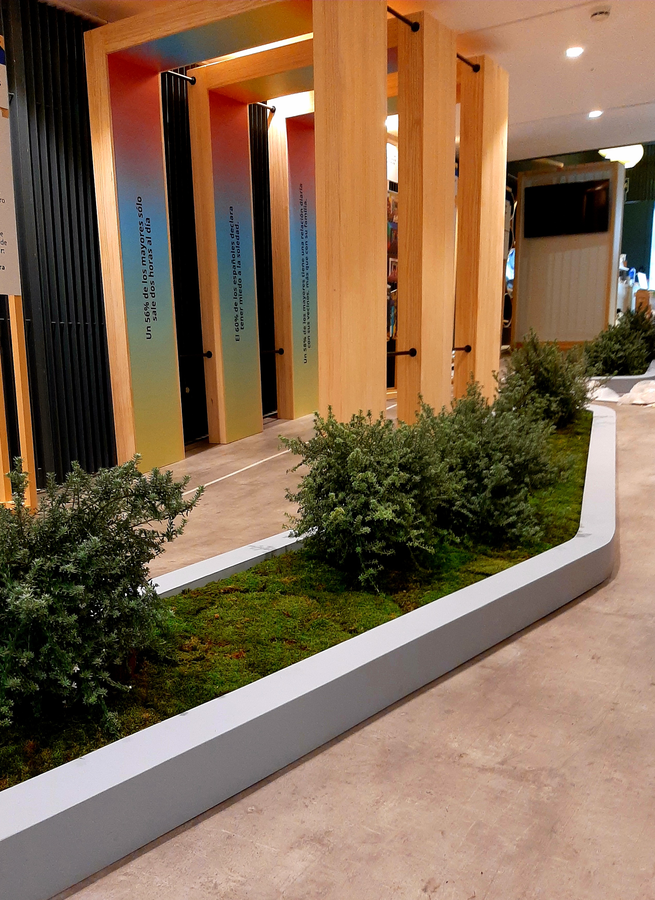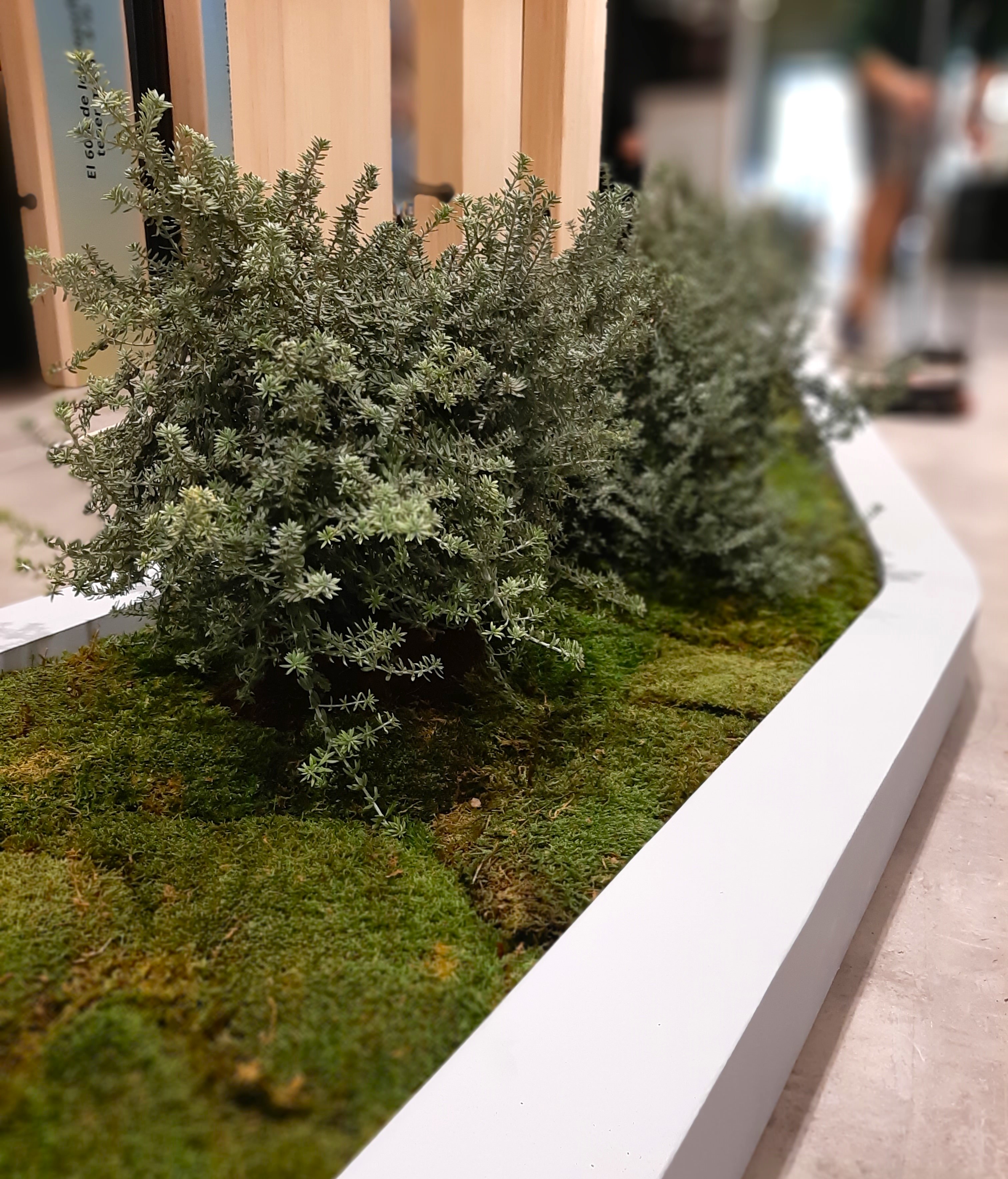 Colocación de plantas con acabado de musgo preservado en jardineras para evento organizado por IKEA en el Colegio de Arquitectos de Valencia